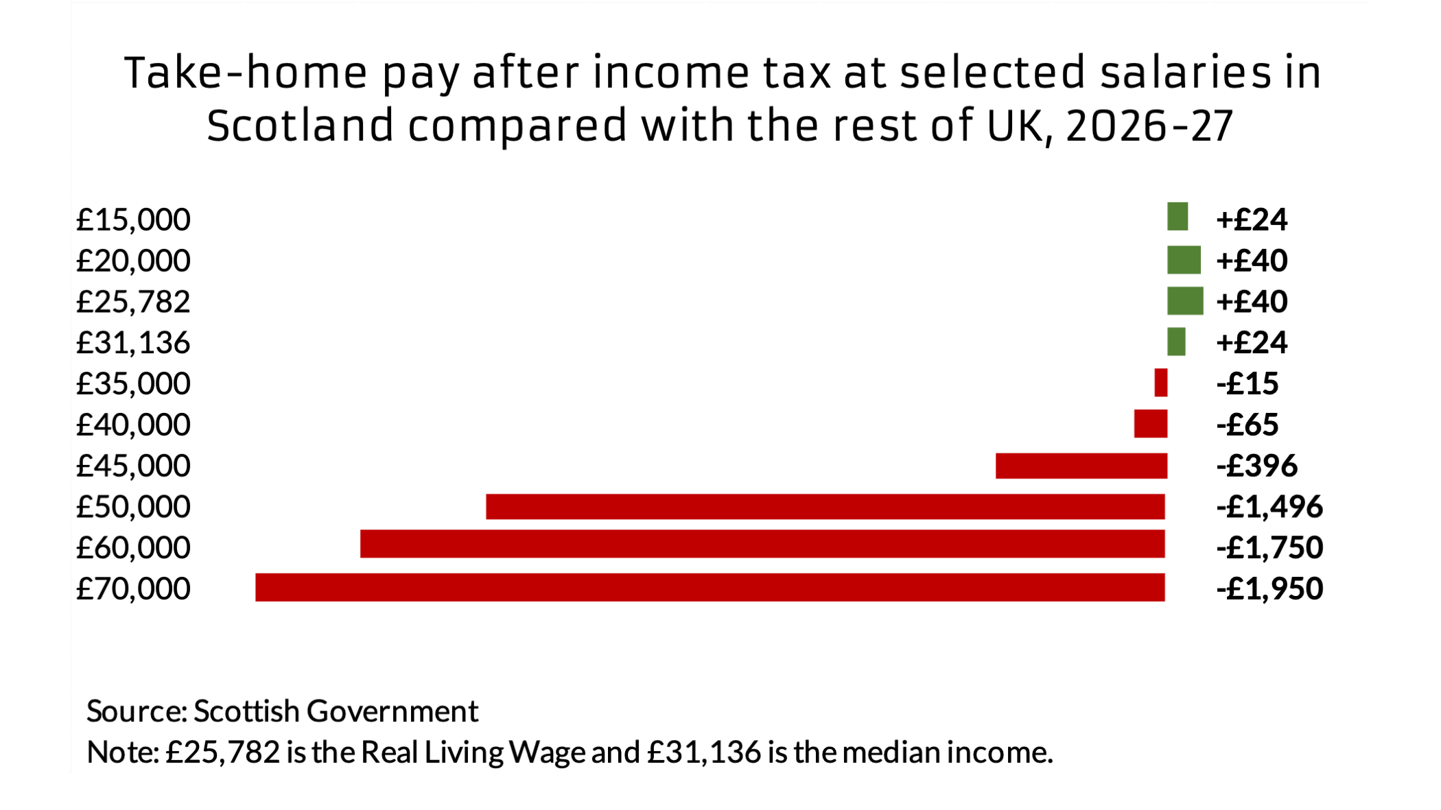 The saving is modest, typically up to around £40 per year, but it does mean Scotland remains marginally more favourable for lower earners.